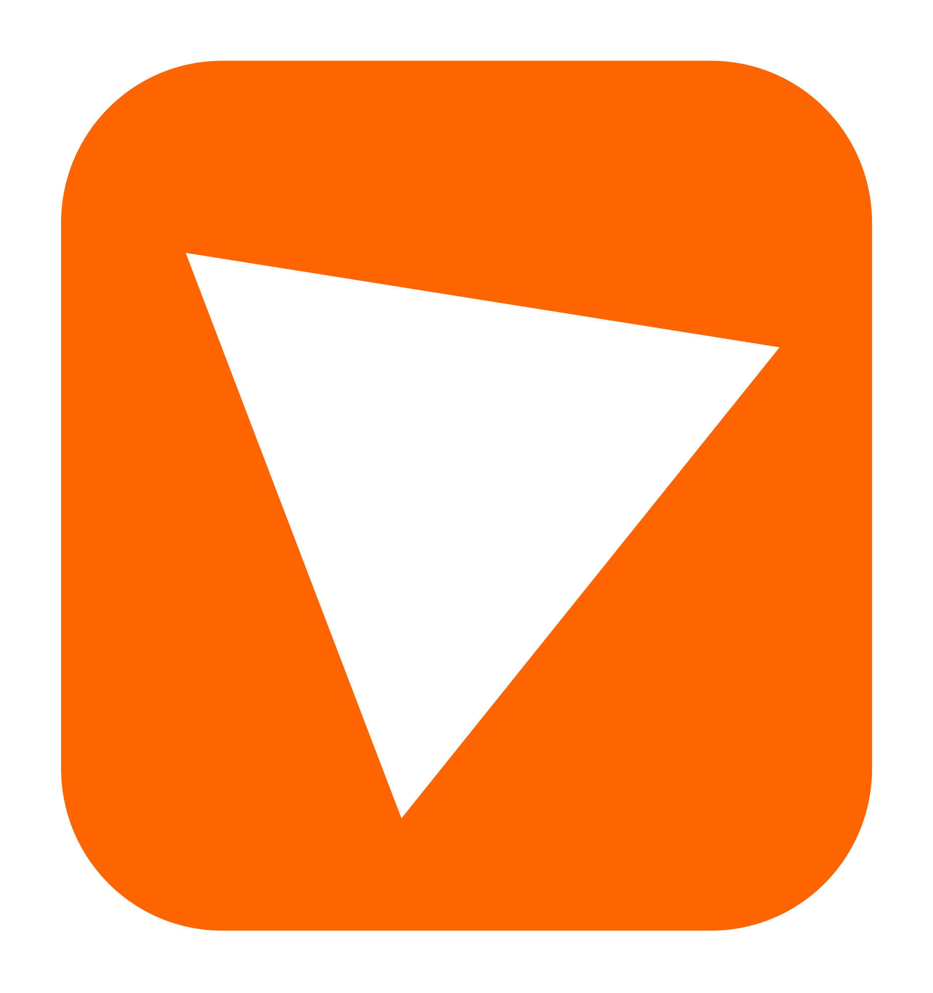 Simple drawing of an orange rounded square with a white triangle inside. An icon?