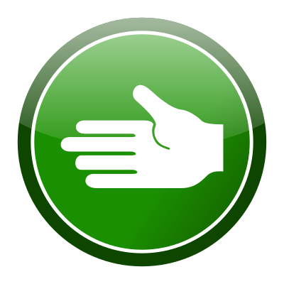 White hand in Green glossy circle icon.