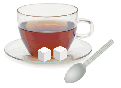 - It all Reflects in My Tip beverage cubes cup drink glass meticulous photorealism photorealistic remix saucer spoon sugar sugar cubes tea