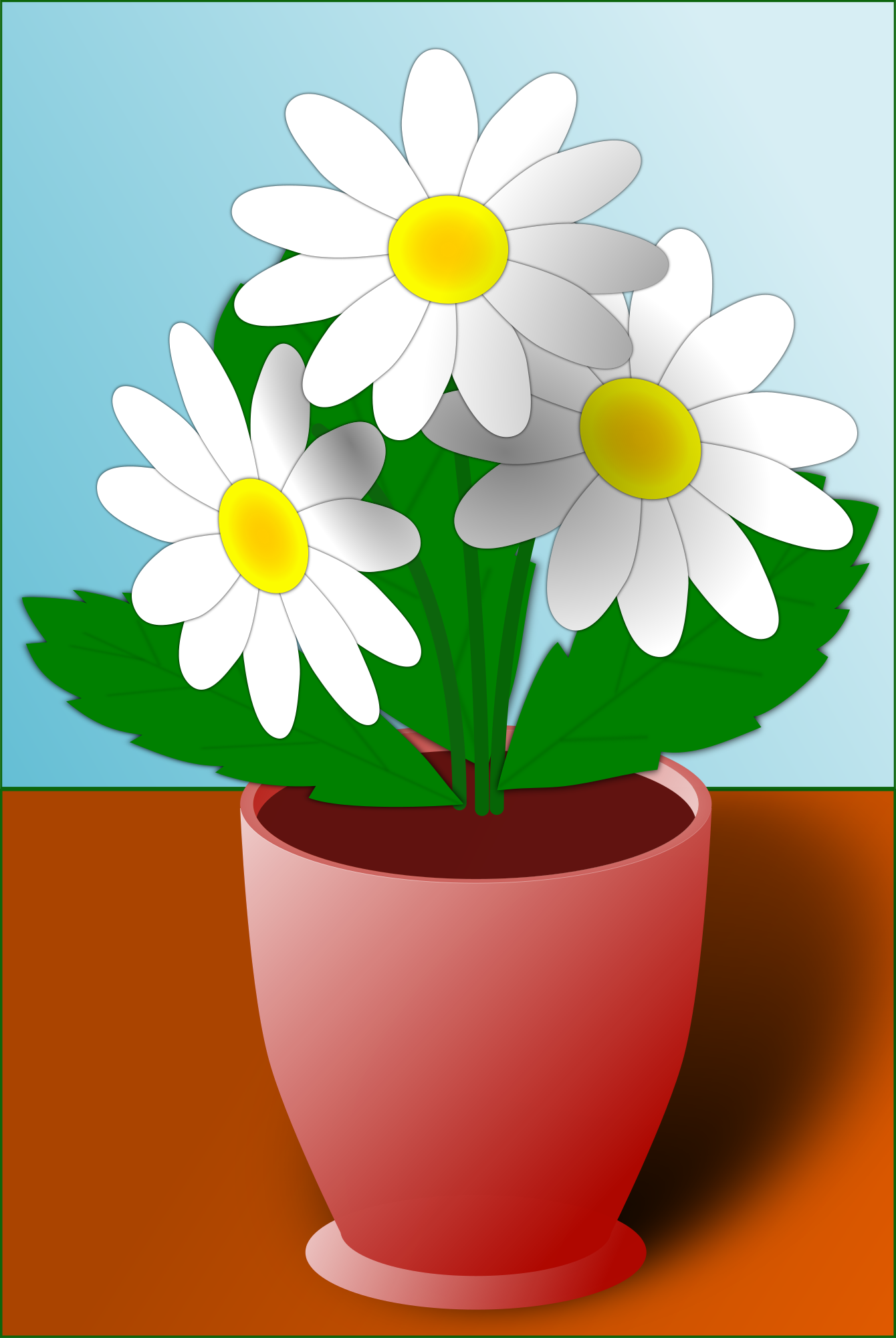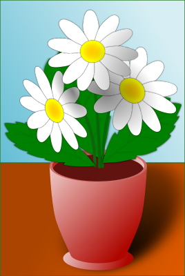 Cartoon style flowers in a pot with a background.