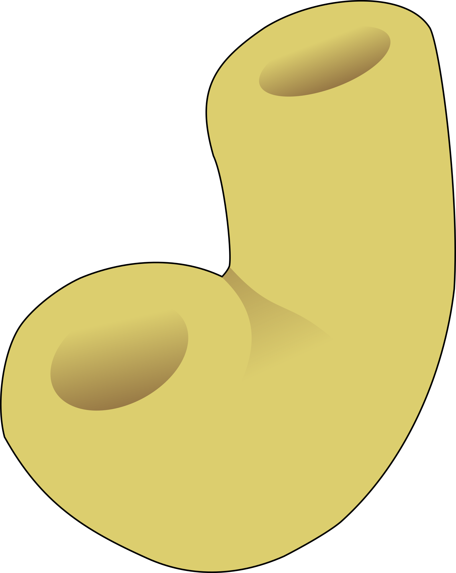 A large piece of macaroni style pasta.