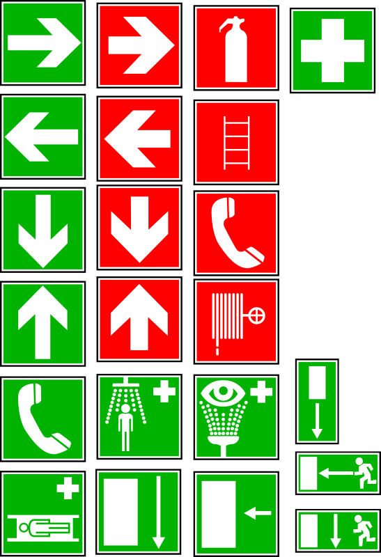 Security signs in red and green.