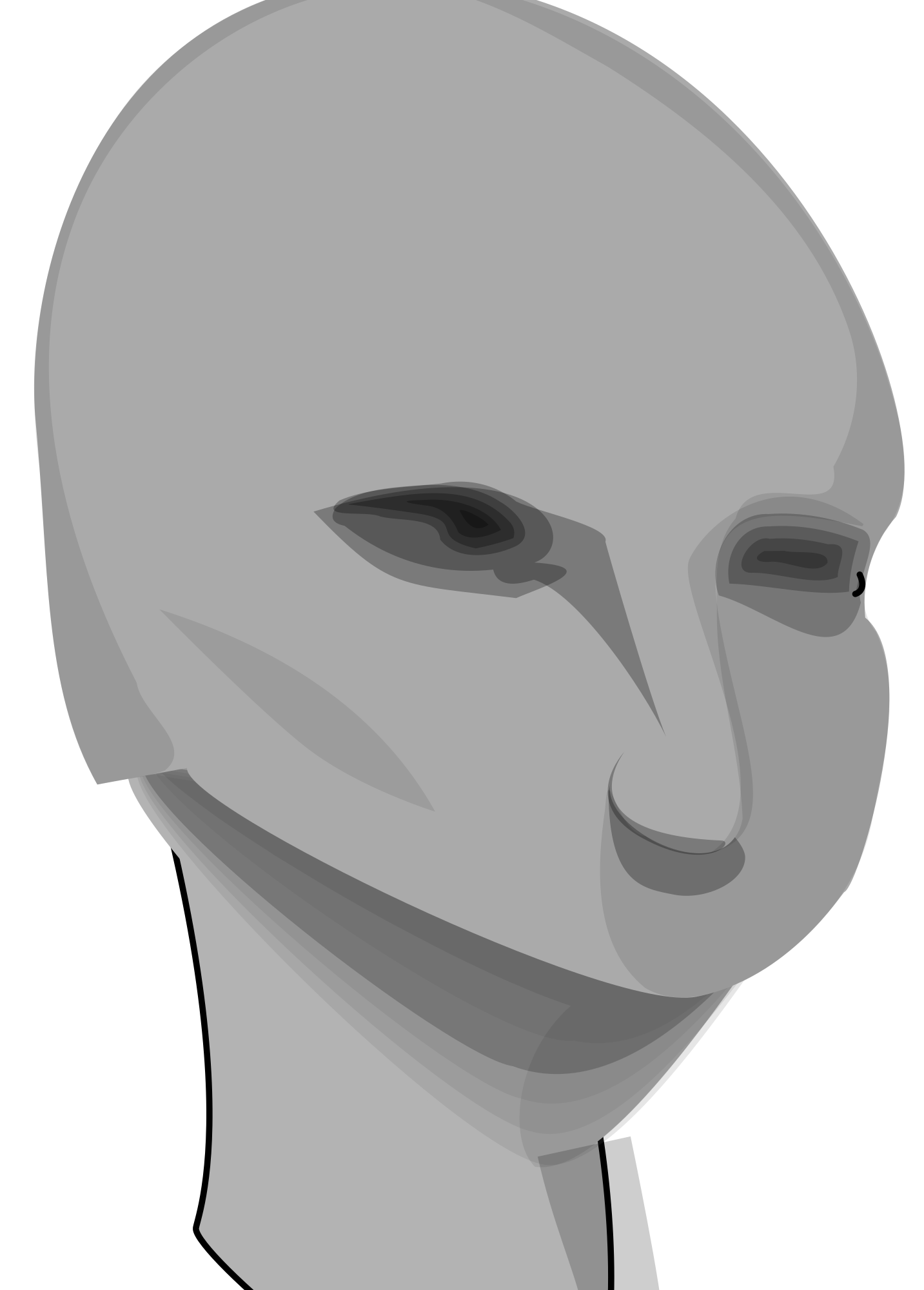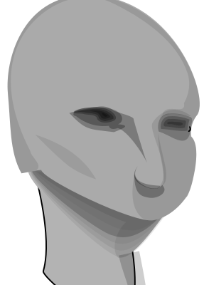 A cartoon style human head. It is missing the lower jaw/mouth.