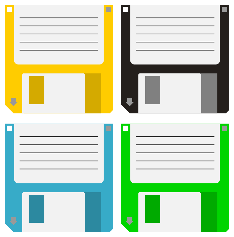 4 colored floppys