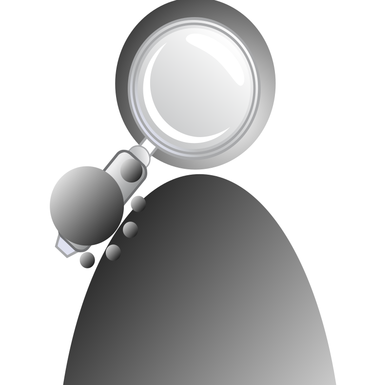 A user inco looking with a magnifier.