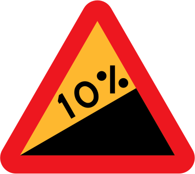 10% upward gradient roadsign