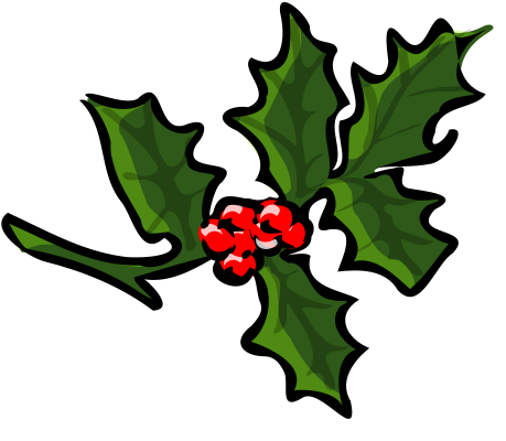 A green and red holly branch with a thick black outline.