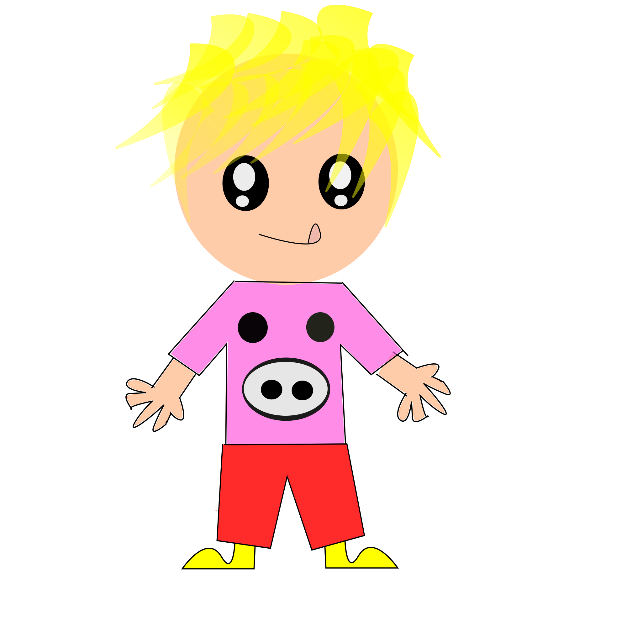 Cartoon boy with a pig t-shirt.