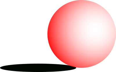 A red shaded ball with a shadow.