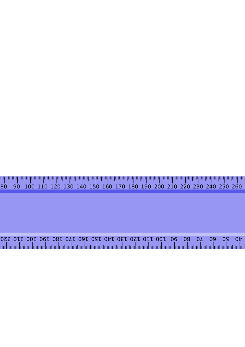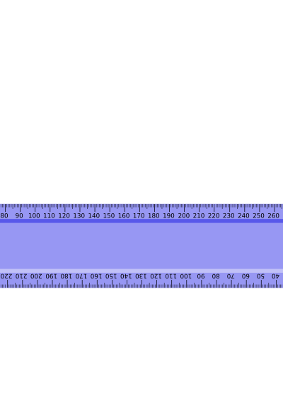 A transparent blue metric ruler