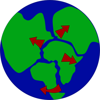 Earth with continents breaking up