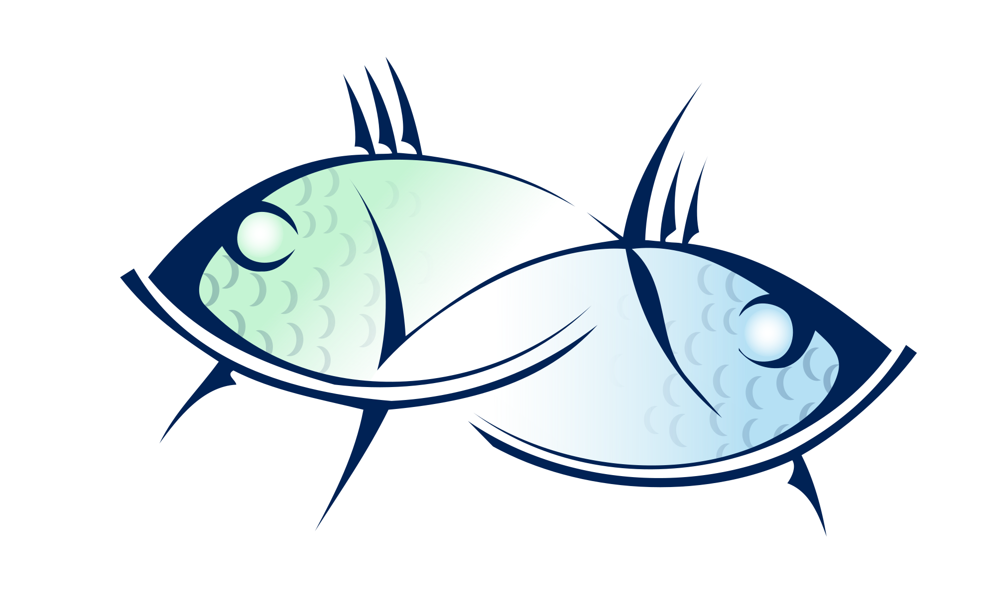 Two interlocking fish point in both directions