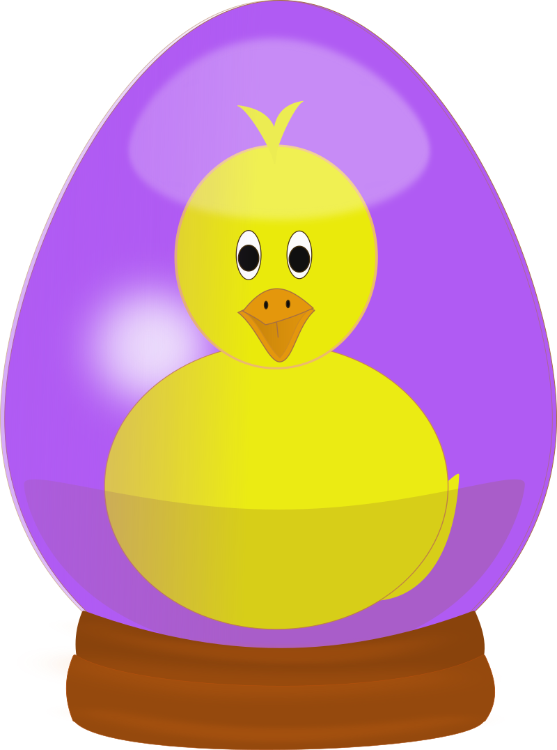 An Inkscape drawing of a yellow chick in a glass Easter Egg globe.
