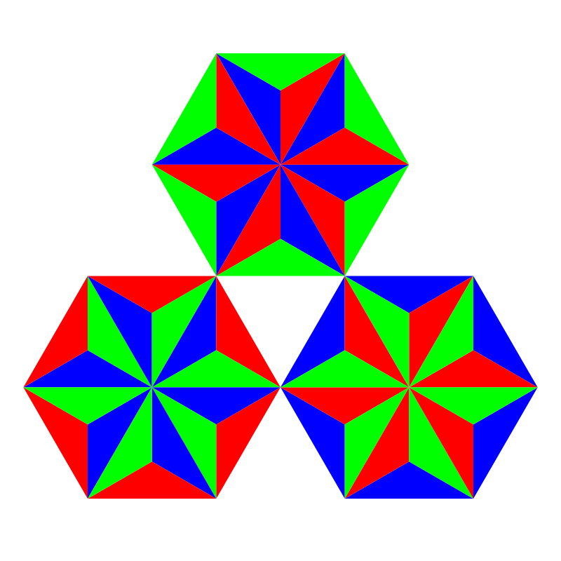 These are made of thirds of regular triangles. I made 3 hexagons with hexagrams inside.