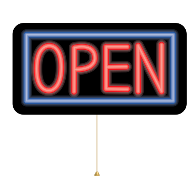 Open Neon Sign with switch handle.
