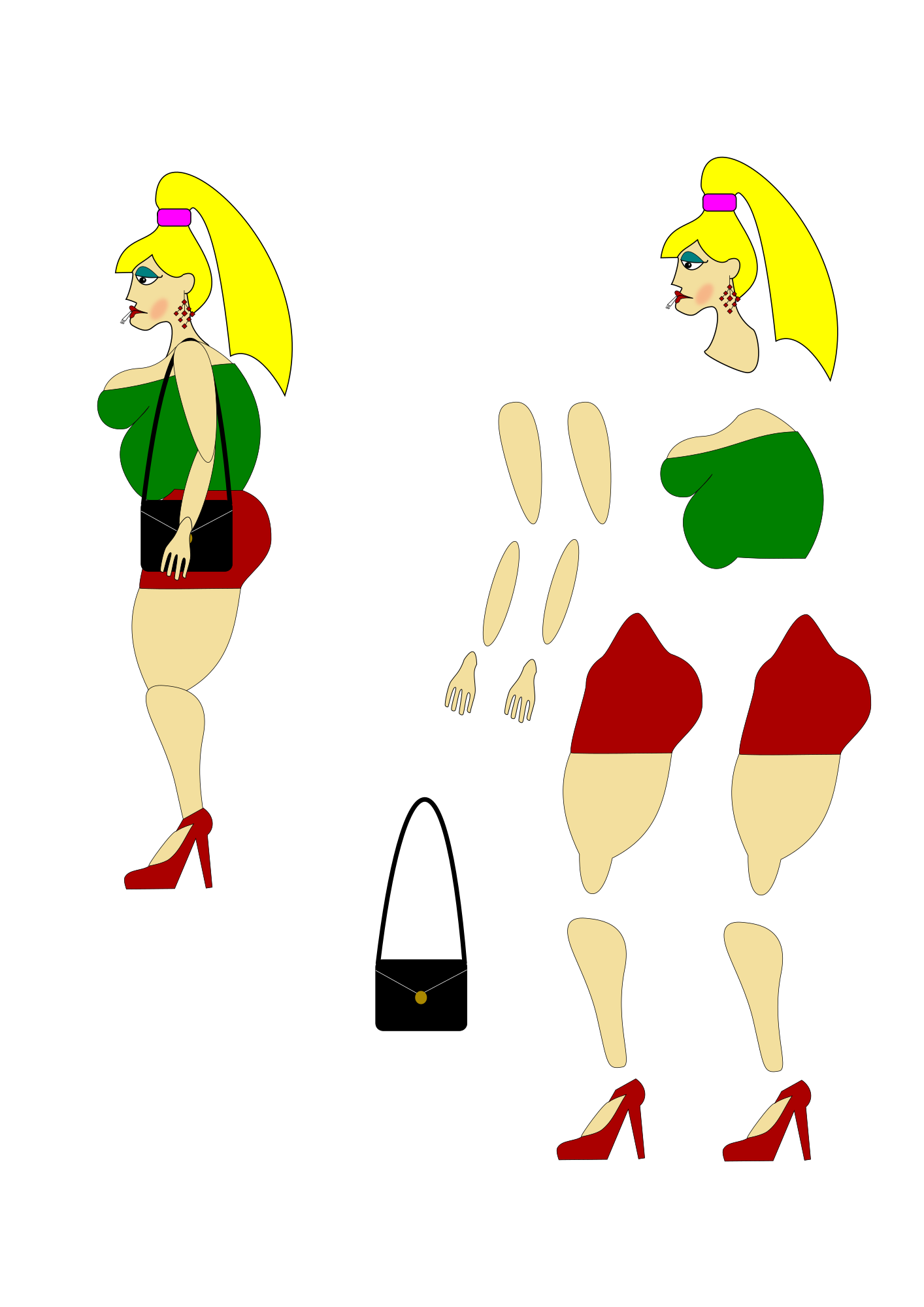A model for making cutout animation, a prostitute. Modelo para facer animación de recortes, unha prostituta.