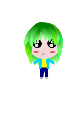 Cartoon boy with green hairs.