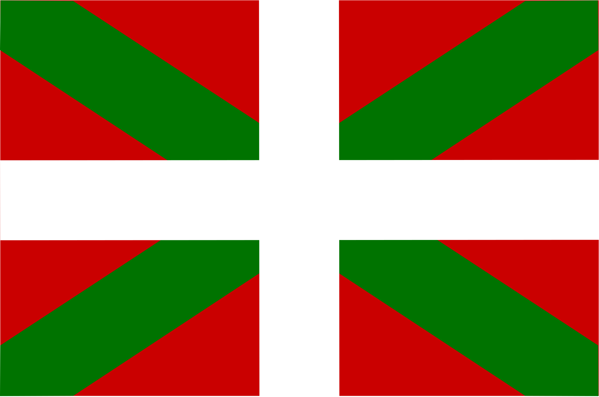 The flag of Basque, Spain is greenandred,with white horizontal and vertical stripe.