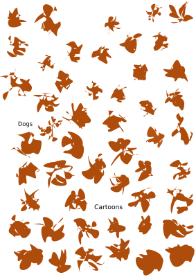 Various cartoons and faces automatically created using the star shape with custom choosen "rounded" and "randomized" values.