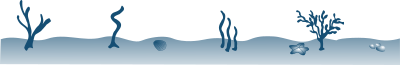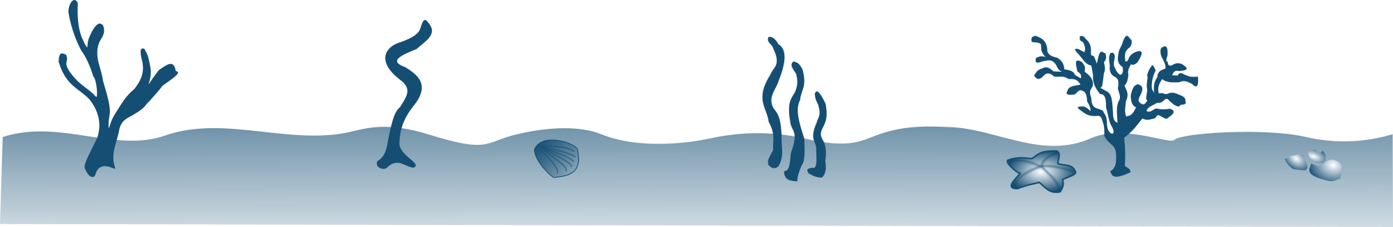 Floor of the ocean with a shell, starfish, stones and some algae