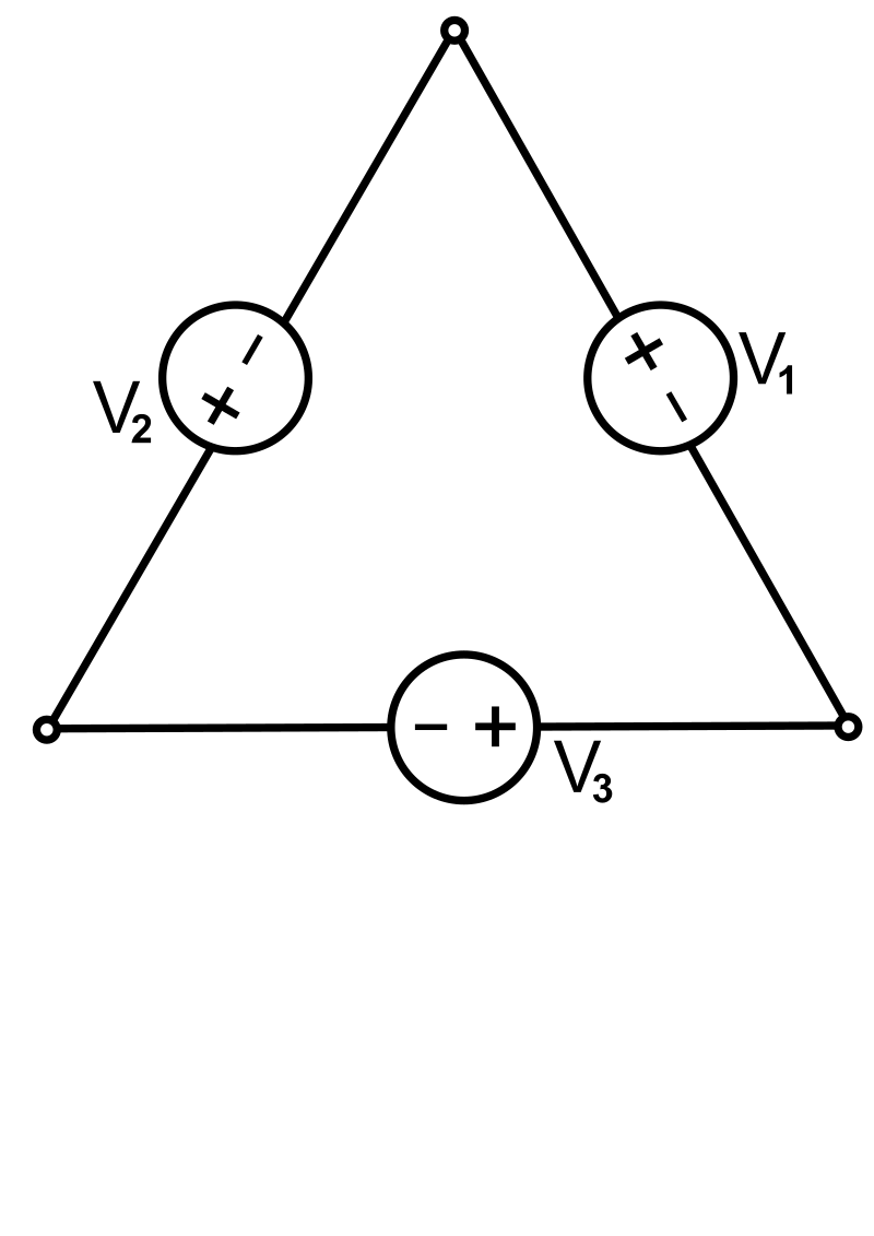 A Three-phase electric power source connected in Delta formation; electrical symbol