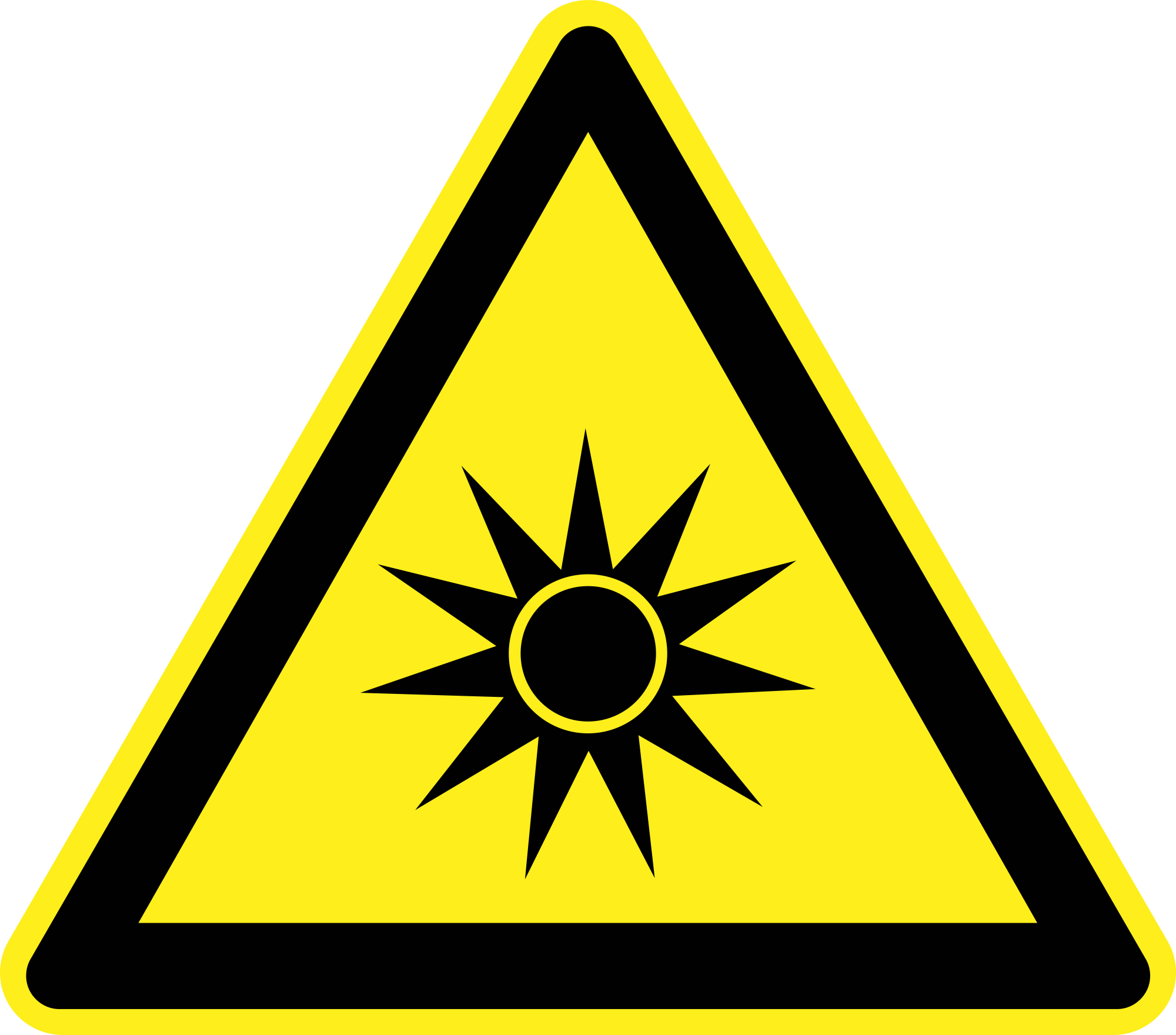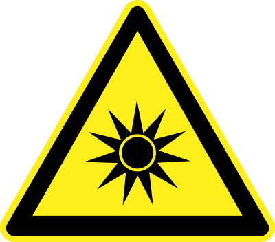 Yellow triangular optical radiation warning sign.