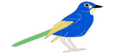 A blue and yellow and green bird.