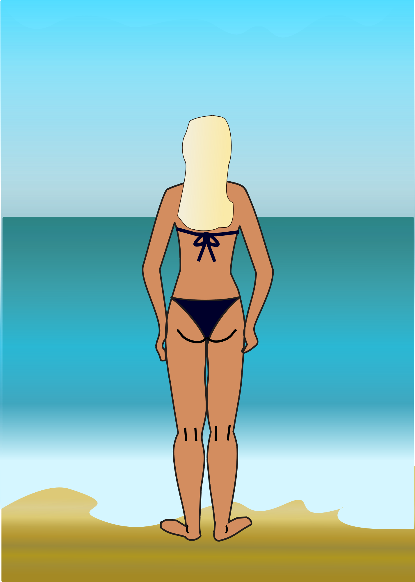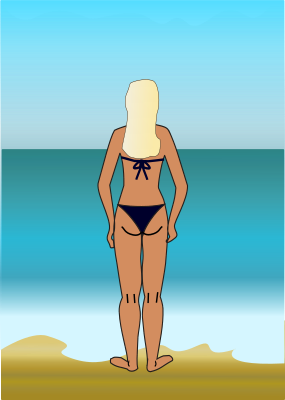 A girl in a bikini looking out over the sea