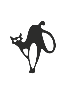 A black cat standing and raising its back.