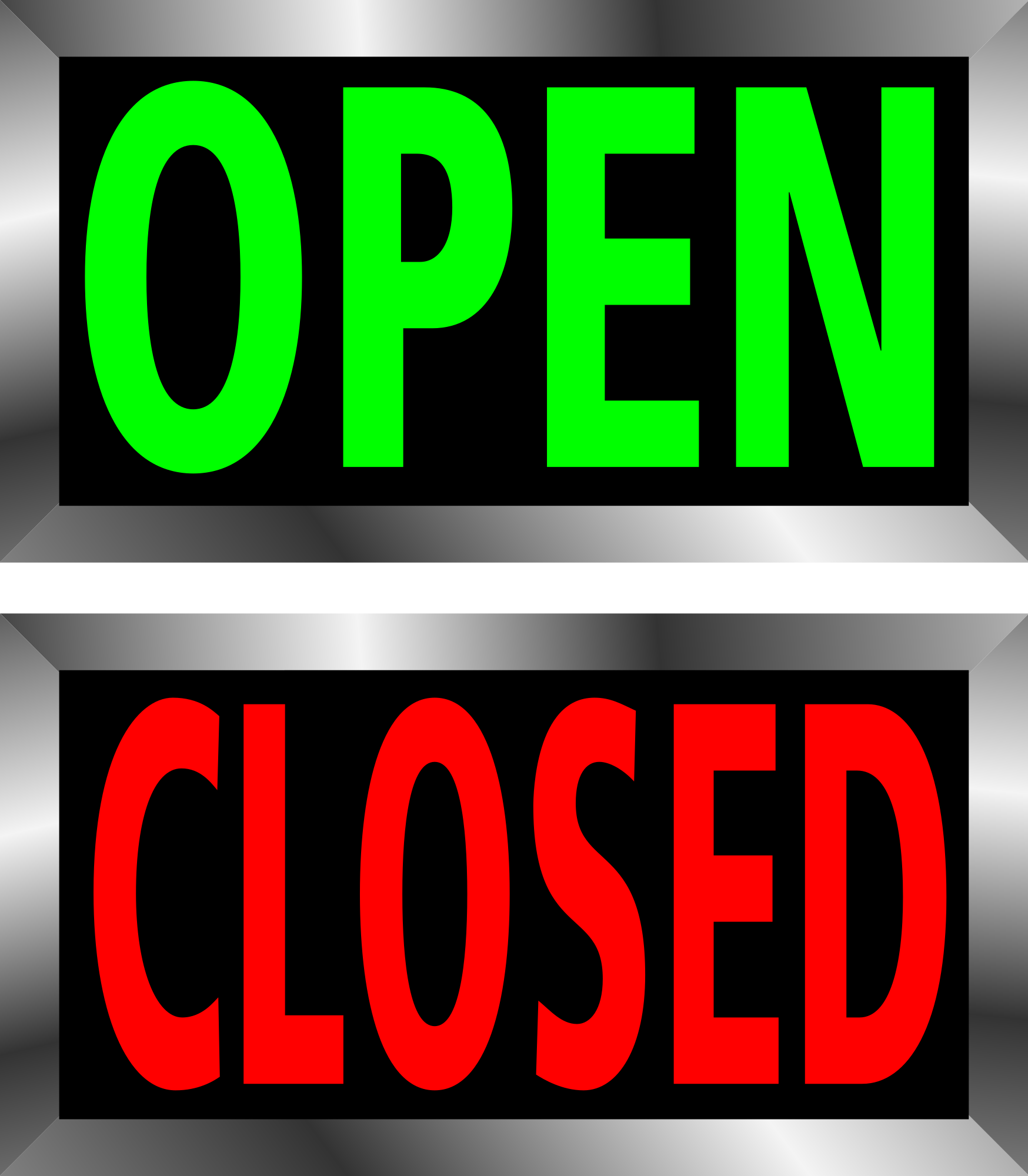 Open and Closed signs with metal frame made from scratch in Inkscape.