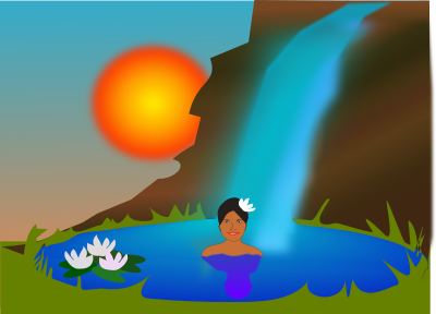 image: bathing in a waterfall