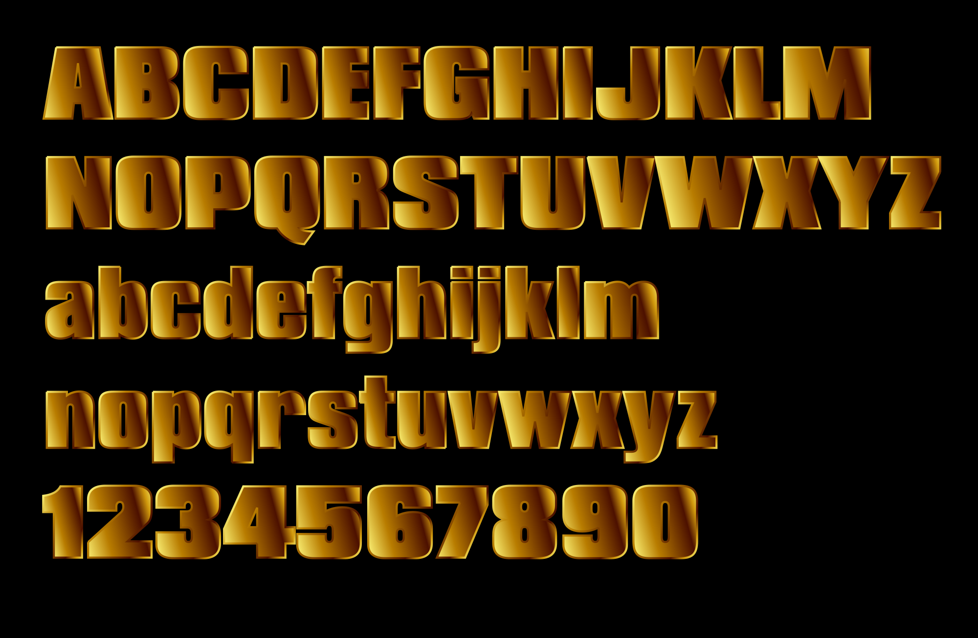 Gold block letters.