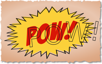 VIntage 1940's syle comic book sound effect on tanned paper with bad, out-of-register printing.