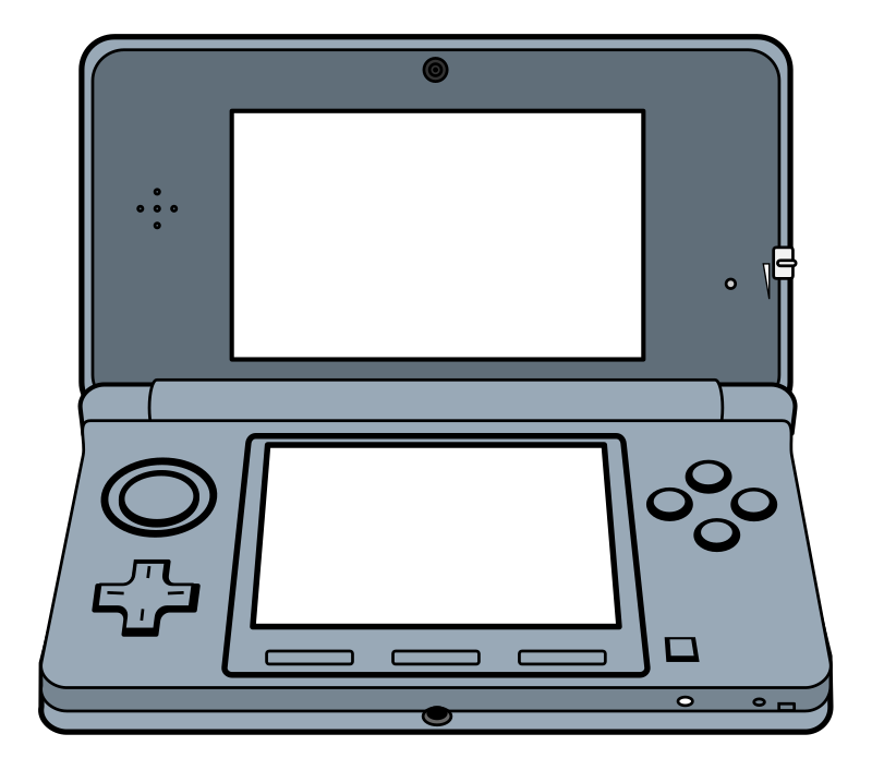 A drawing of a handheld gaming system, similar to Nintendo's 3DS.