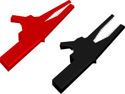 red and black alligator clips used in electronics as connectors