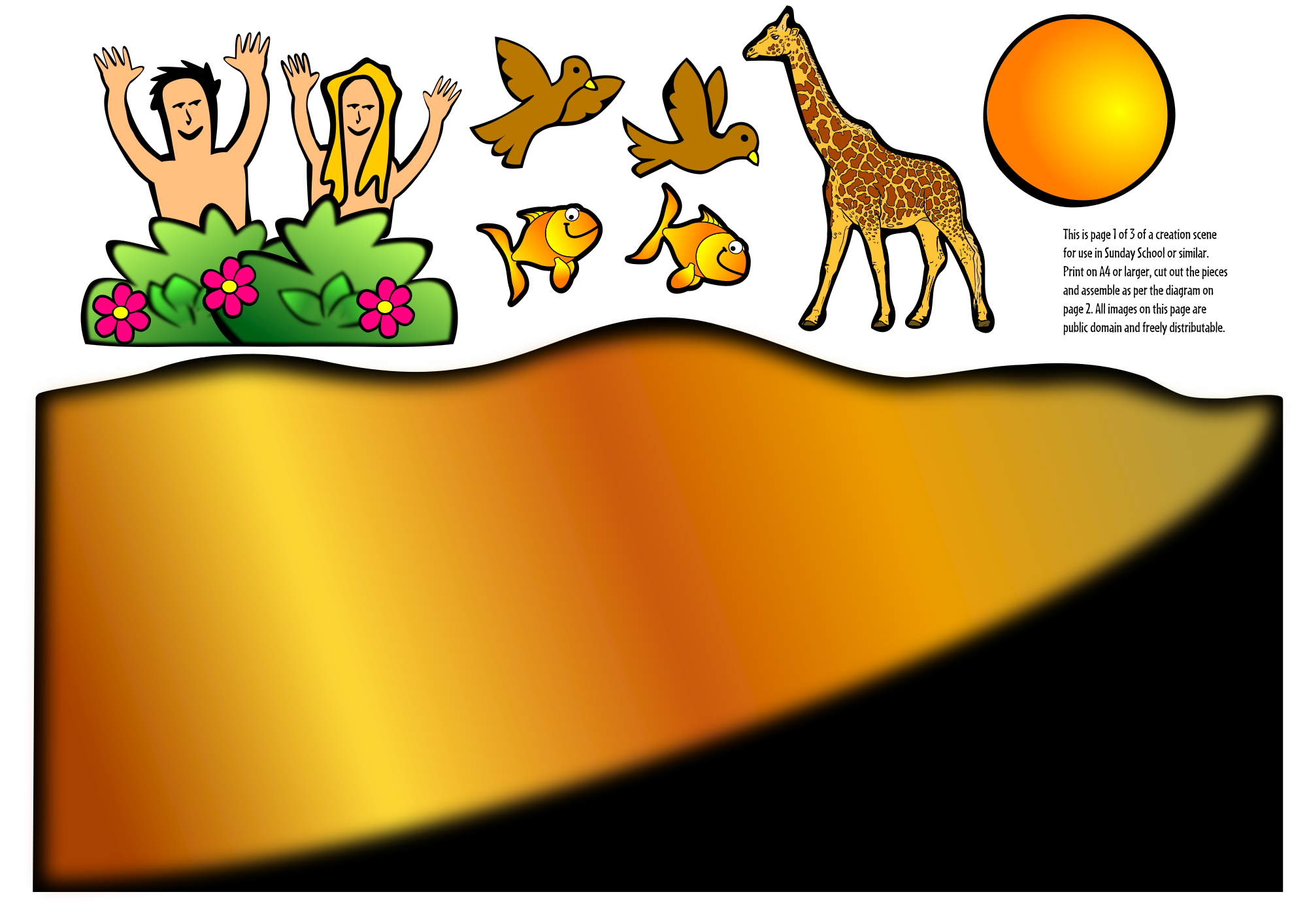 Creation Scene designed for a piece by piece build up to full A4 (or proportional eg:A3) printout