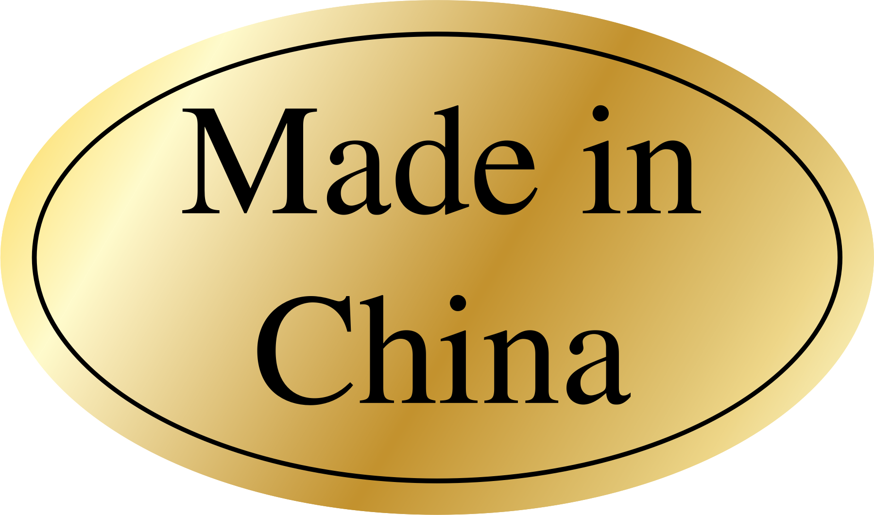 A gold Made in China sticker.