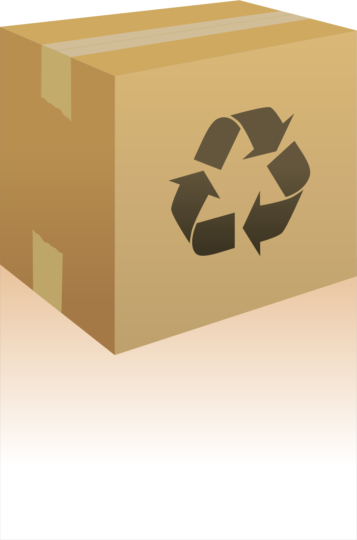 Cardboard box with recycling sign.