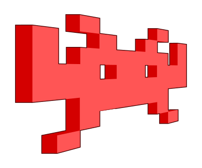 A 3D space invader icon.