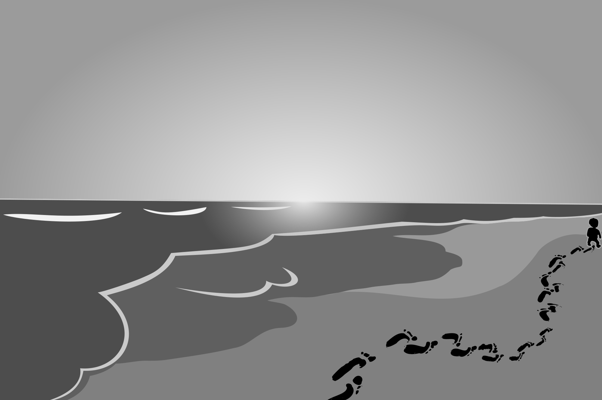 P alone baby beach black boy calm child feet footprints gray one