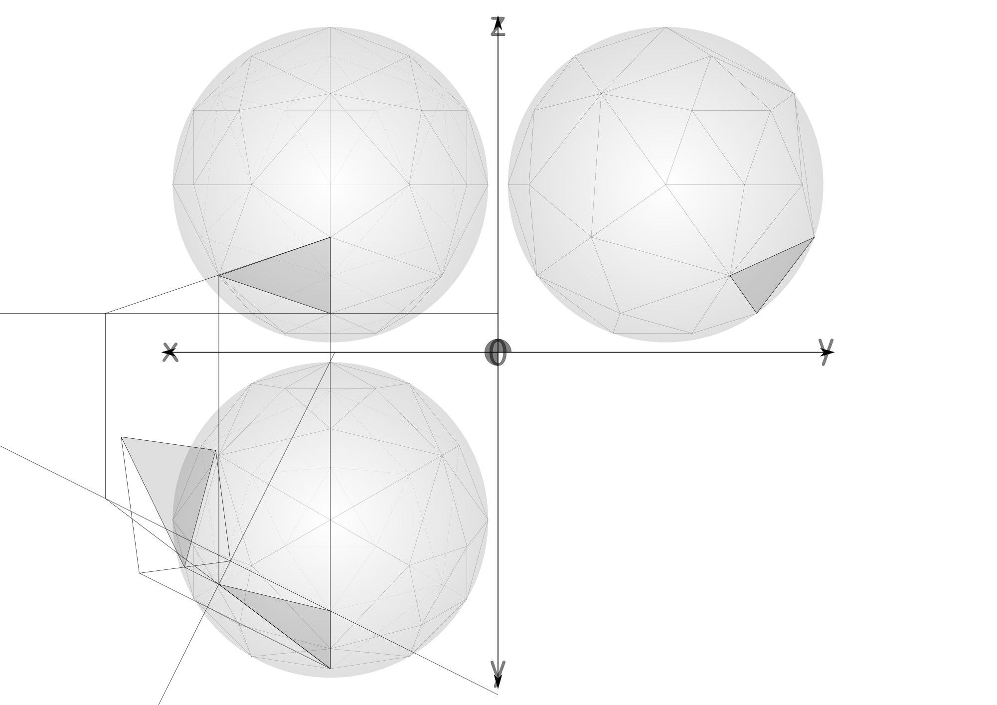 - circumscribed sphere constrution geodesic sphere geometry net geodesic sphere parallel projection