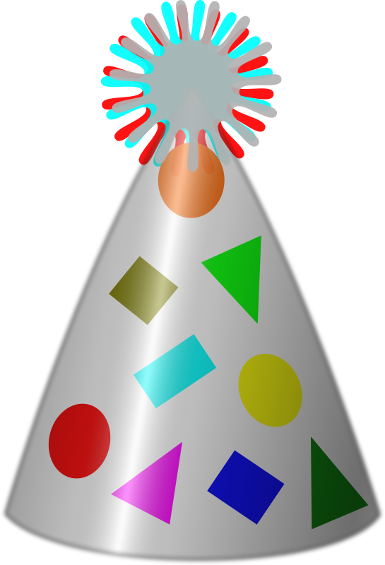 Silver plated party hat, with coloured motifs.