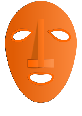 a face with a big nose and three holes for eyes and mout