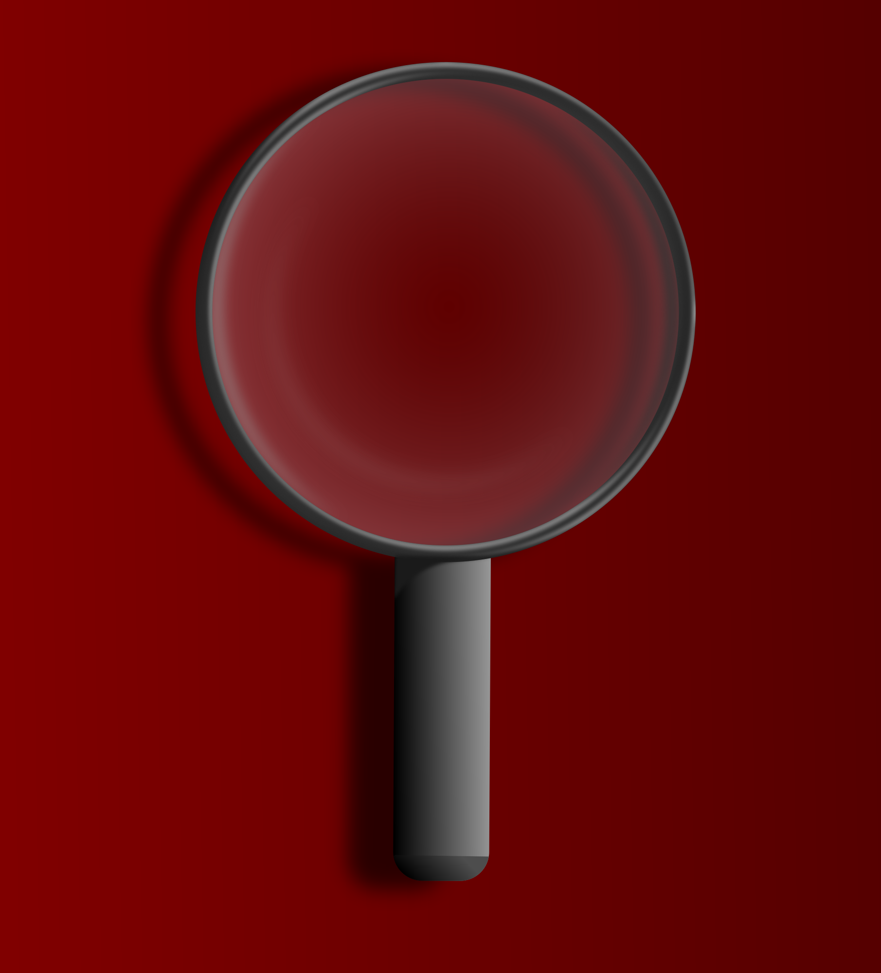 A hand magnifying lens on a burgundy background.