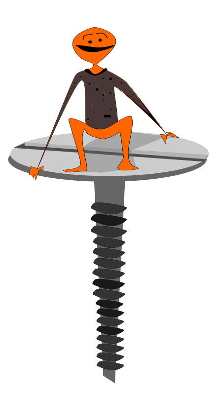 cartoon man on screw