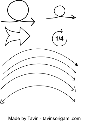arrows used for diagramming Origami. Fold, unfold, rotate and turn over