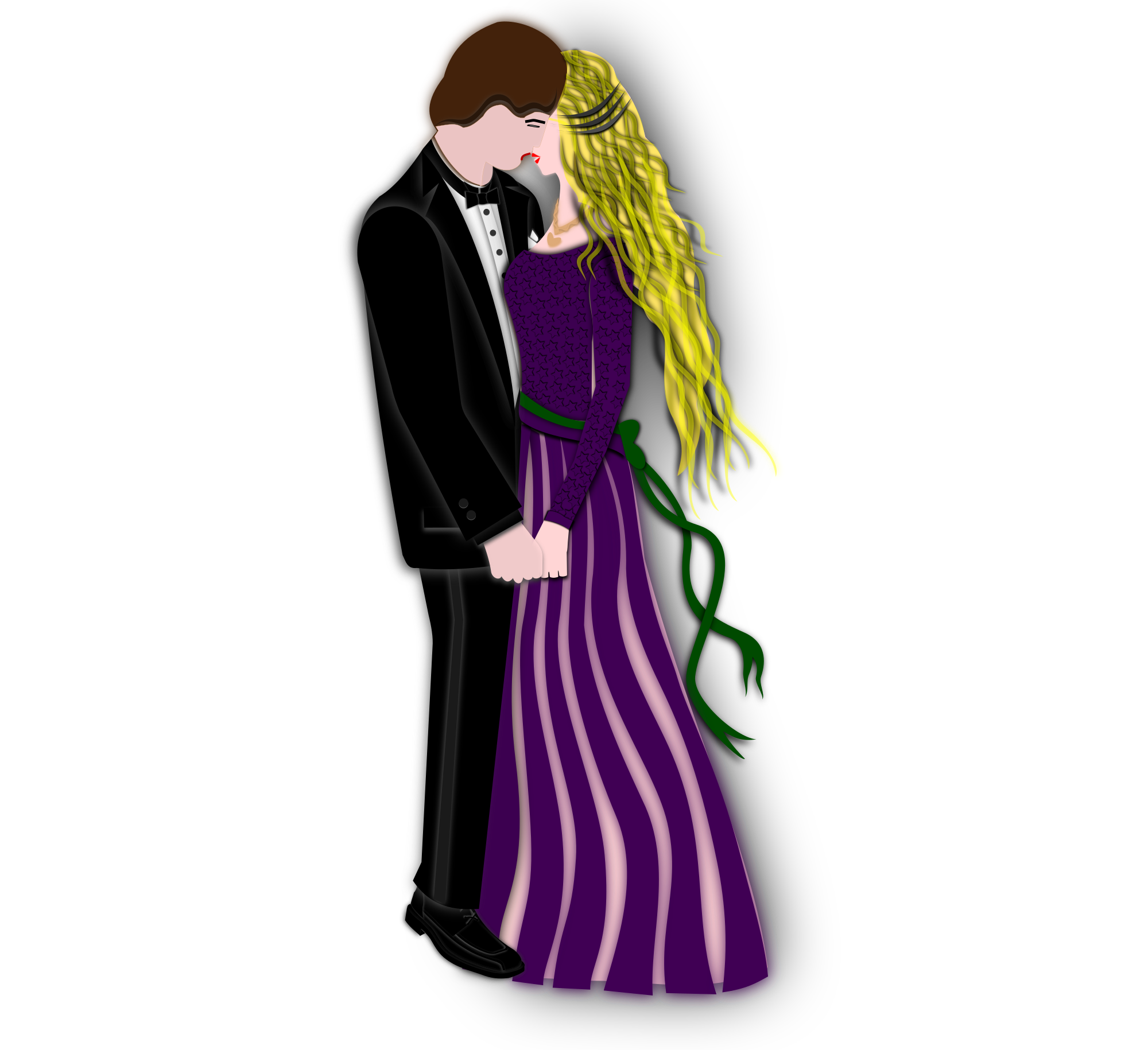 A Valentine originally created by Merlin2525 was modified to use it in an animated logo on our website. The image is of a lovely couple holding hands. The man is wearing a formal outfit. The woman is wearing a dress with ribbon and lace. Her top is decorated with stars. A heart pendant decorates her neck. Lots of detail went into this work. Enjoy!