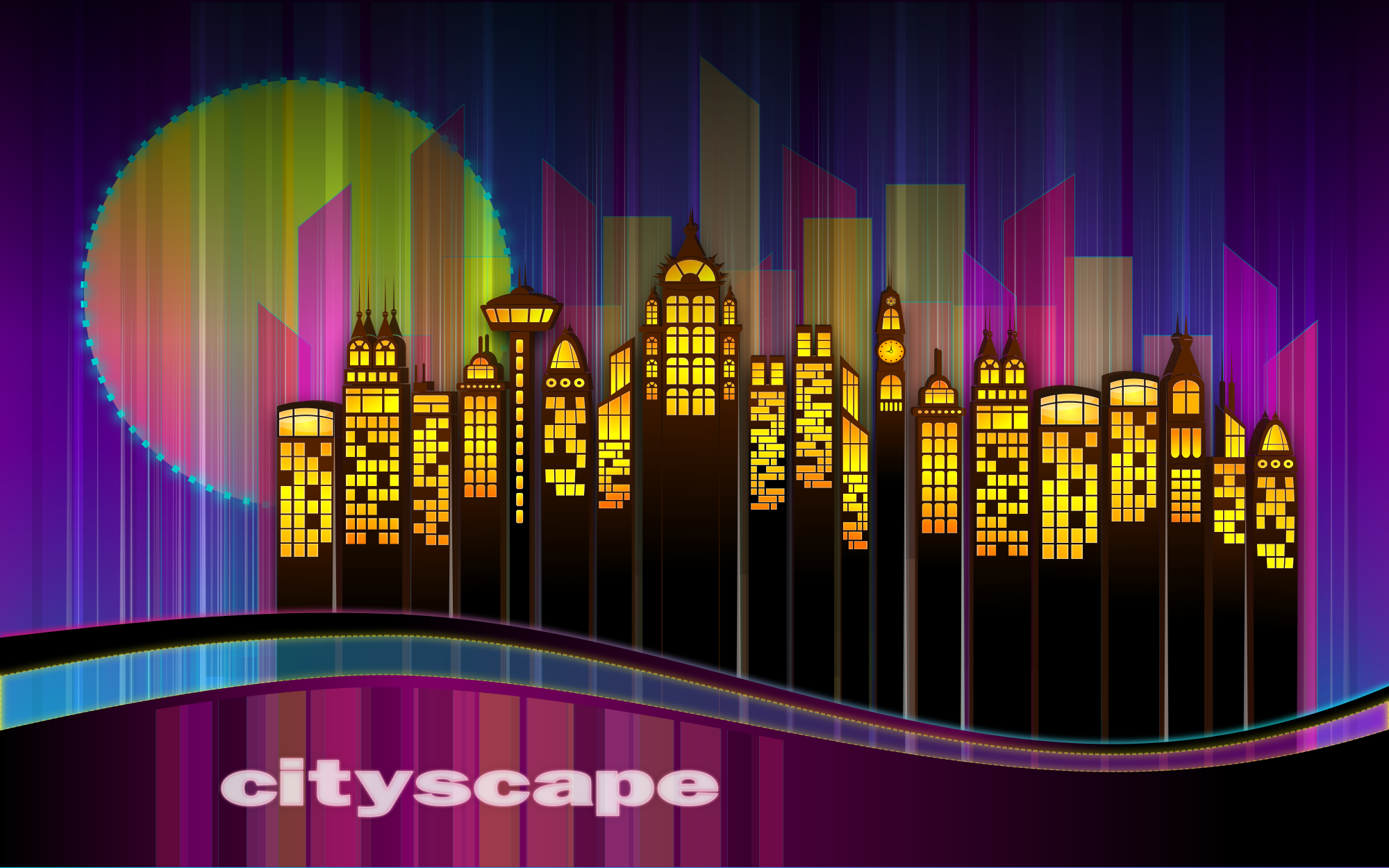 skyline of a city at night