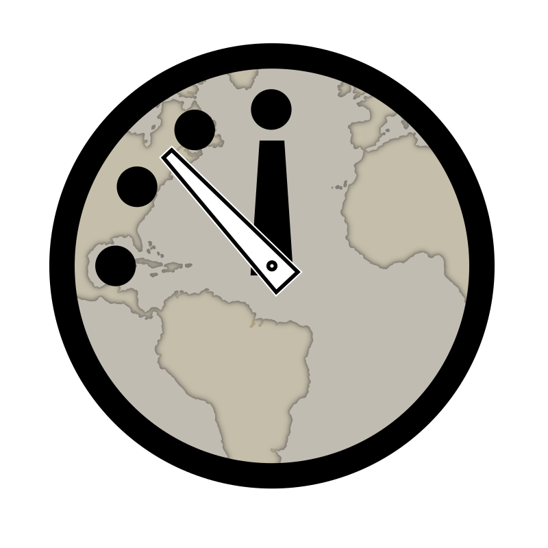 The closer the clock is to midnight, the closer the world is estimated to be to global disaster.
