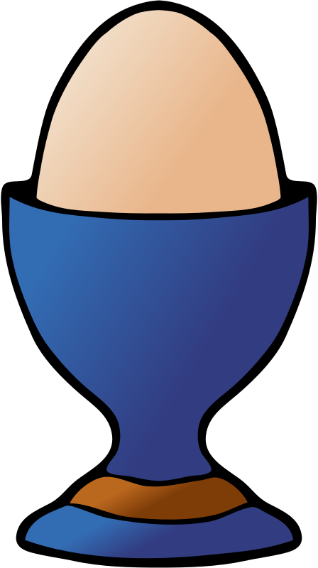 A boiled egg in a blue egg holder.